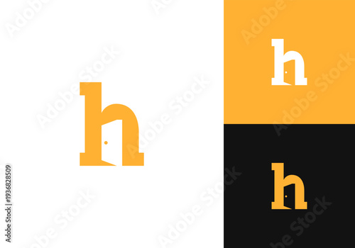Letter H Entrance Open Door Frame Negative Space Office Room Studio Vector Logo Design Illustration