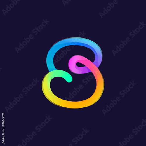 Letter S logo. Rainbow gradient one line icon. Overlapping multicolor emblem with glossy shine.