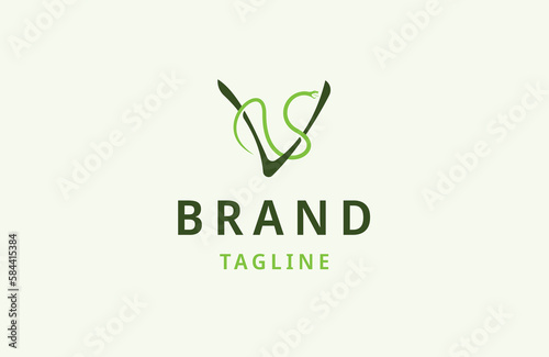 Letter v snake logo icon design template flat vector