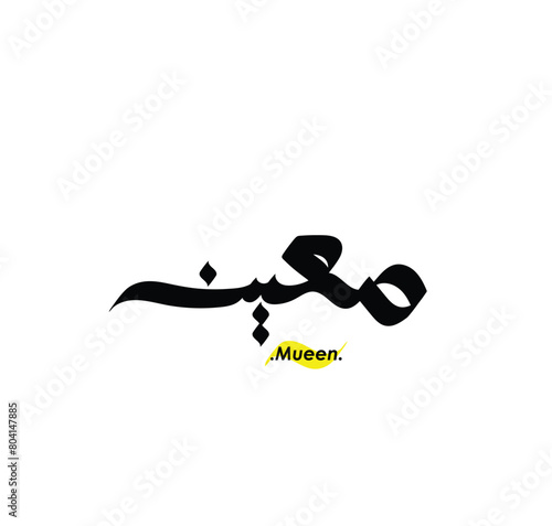 lettering beautiful name (Mueen) with arabic style on white background