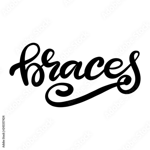 Lettering vector illustration about dental health care with the image of braces on teeth. EPS10. The image of the stages of orthodontic treatment for posters for dental clinic.