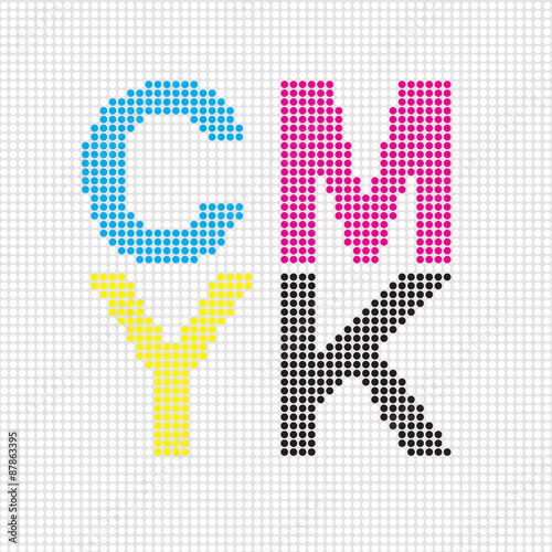 Letters with Cyan, Magenta, Yellow and Black on white background