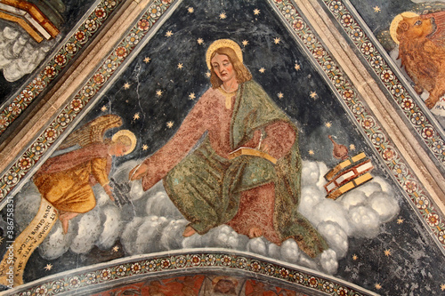 l'Evangelista Matteo; volta del protiro della chiesa della Natività di Maria a Pellizzano (Trentino)
