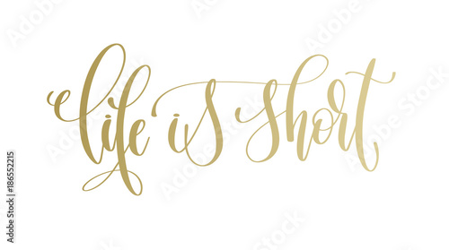 life is short - golden hand lettering inscription text
