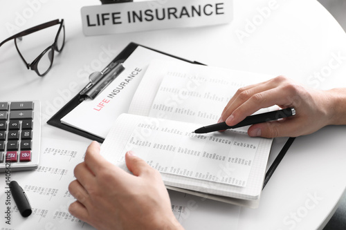 Life planning concept. Hands of insurance agent at workplace