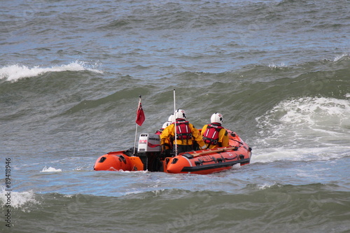 Lifeboat Dinghy Racing Against Waves in North Sea, in Display for Whitby Regatta, August 2015.