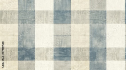 Light Blue and Cream Plaid Rustic Fabric Texture.