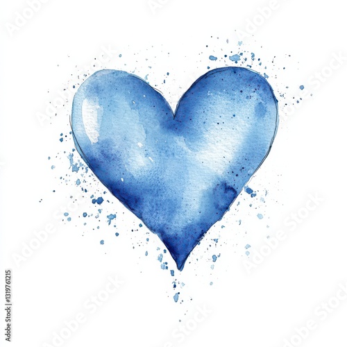 Light blue heart cartoon illustration in watercolor style