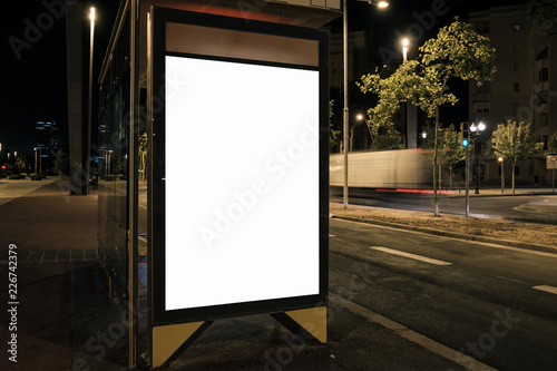 Light box for advertising with white blank space at bus stop. Night mock-up design concept. Horizontal
