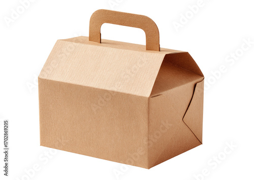 Light brown cardboard box with handles, gable roof shape
