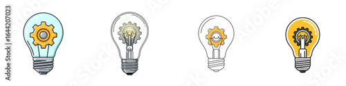 Light Bulb and Gear Icon Set for Innovation and Ideas