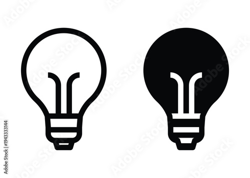 Light Bulb Icon Set in Black and White Style for Creative Design Projects