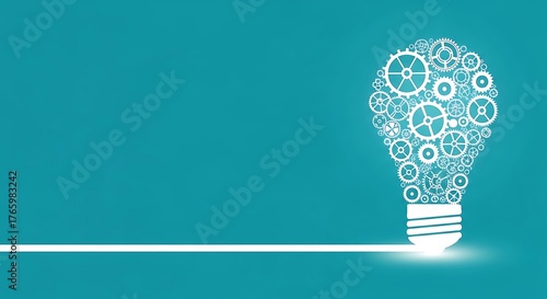 Light bulb made of gears on blue background representing innovation idea