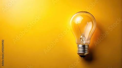 Light bulb on a vibrant yellow background with soft, warm glow, discovery, light up the world