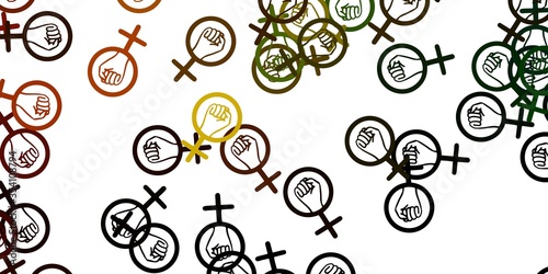 Light Green, Yellow vector pattern with feminism elements.