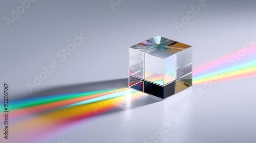 Light Interaction with Prism Creating Colorful Spectrum on Surface, Refraction and Reflection of Light in Artistic Photography