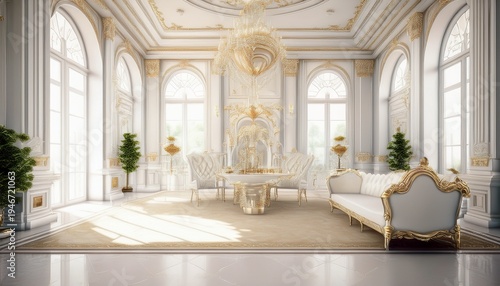 light luxury royal posh interior in baroque style white hall with expensive oldstyle furniture generation ai