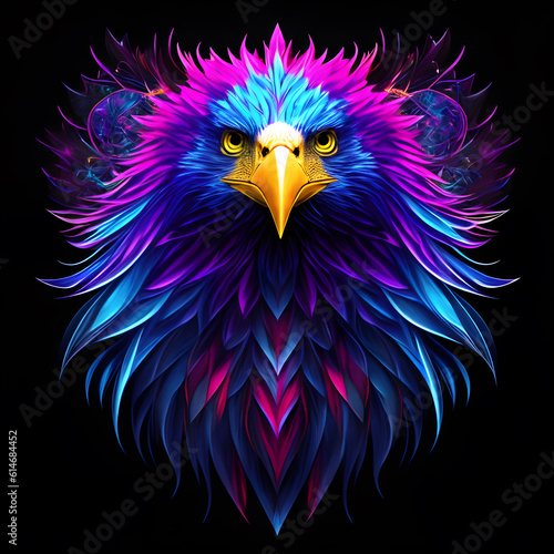 Light neon style art portrait of a eagle. Generative AI