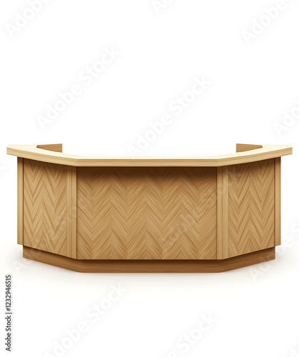 Light Wooden Reception Counter With Chevron Pattern Front Panels On Isolated White Background