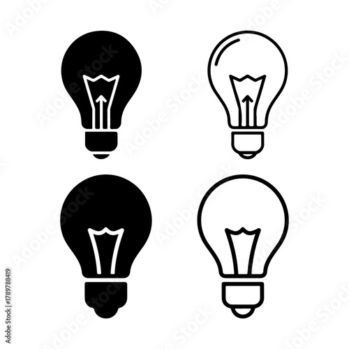Lightbulb or idea icon set vector outline and silhouette design