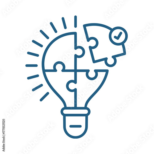 Lightbulb puzzle pieces forming a bright idea with a checkmark isolated on transparent background
