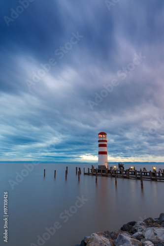 Lighthouse at Lake Neusiedl at sunset