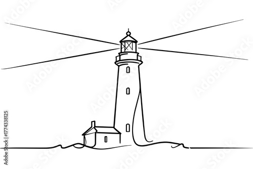 Lighthouse continuous line art, minimalist coastal architecture illustration