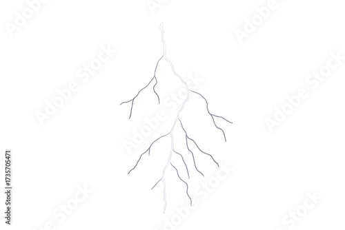 Lightning bolt representing electric energy, a natural phenomenon of light during a storm, with a transparent background