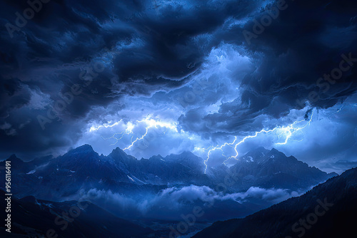 Lightning Strikes Across Majestic Mountains, A Symphony of Power and Nature's Fury