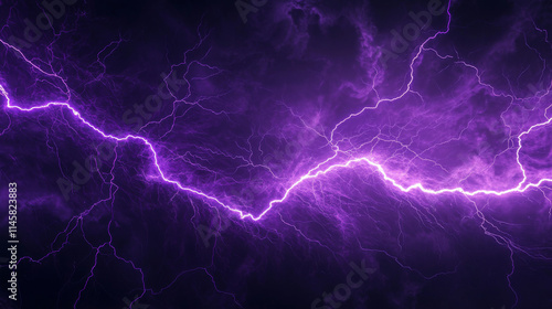 Lightnings, purple thunderbolt strikes at night. Electric impact effects, thunderstorm sparking discharges isolated on transparent background, vector realistic illustration