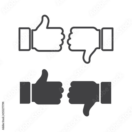 Like and dislike icons set. Thumbs up and thumbs down.