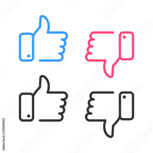 Like and dislike icons set. Thumbs up and thumbs down. Vector illustration.