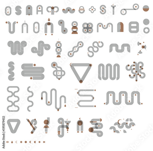line abstract y2k modern element poster wall art clipart 80s architecture vector