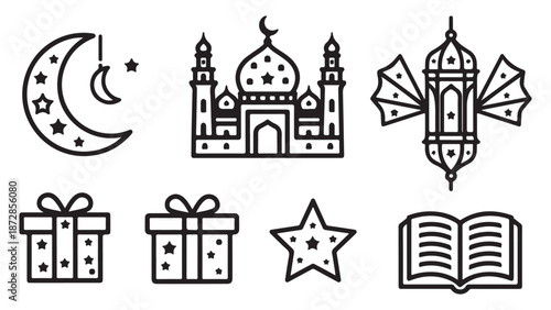Line Art Icons Set for Islamic Holiday Ramadan Eid Celebration
