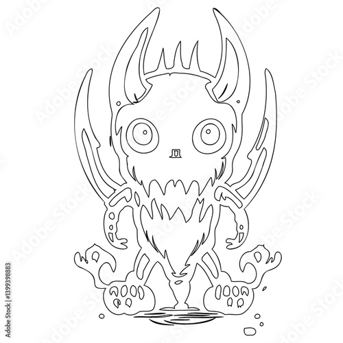 Line Art Illustration of Whimsical Horned Character