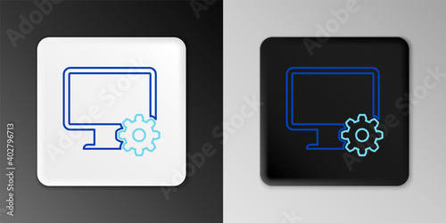 Line Computer monitor and gear icon isolated on grey background. Adjusting, service, setting, maintenance, repair, fixing. Colorful outline concept. Vector.