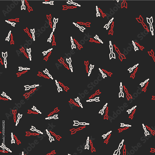 Line Dart arrow icon isolated seamless pattern on black background. Vector