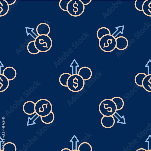 Line Financial growth dollar coin icon isolated seamless pattern on blue background. Increasing revenue. Vector