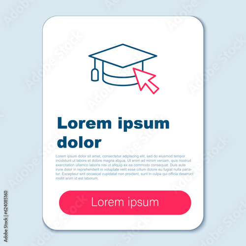 Line Graduation cap with cursor icon isolated on grey background. World education symbol. Online learning or e-learning concept. Colorful outline concept. Vector