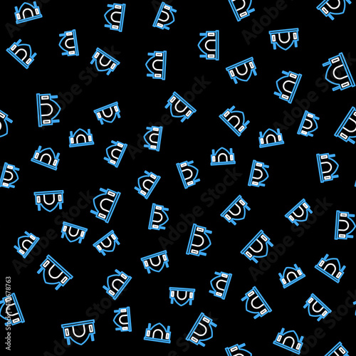 Line Hindu spiritual temple icon isolated seamless pattern on black background. Vector.