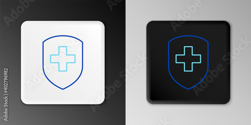 Line Medical shield with cross icon isolated on grey background. Protection, safety, password security. Colorful outline concept. Vector.