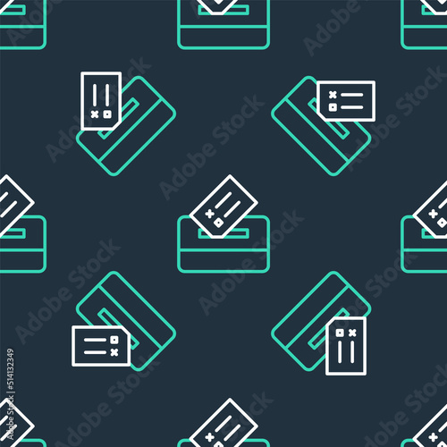 Line Vote box or ballot box with envelope icon isolated seamless pattern on black background. Vector