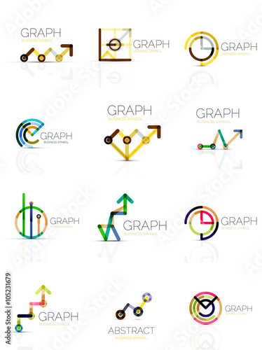 Linear graph and chart abstract logo set, connected multicolored line segments