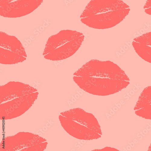 Lip prints in soft pastel colors. Seamless pattern with traces of kisses. Suitable for fabric print, romantic greeting card or wrapping.