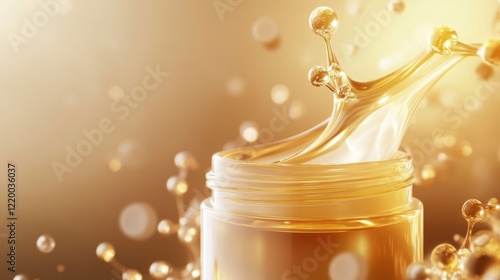 Liquid Gold Splashing from Container with Soft Bokeh Background