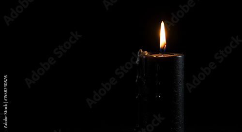 Lit Black Candle with Dripping Wax and Flame.