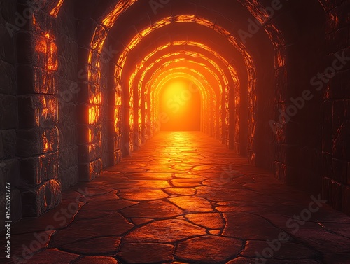 Lit Dungeon Tunnel with Stone Floor and Walls