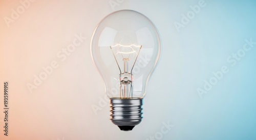 Lit lightbulb with visible filament, centered, against a blended orange and blue