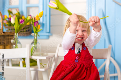 Little baby girl closeup shows different emotions