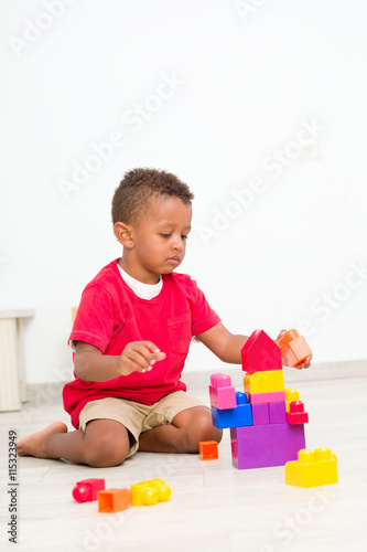 Little boy play construction set